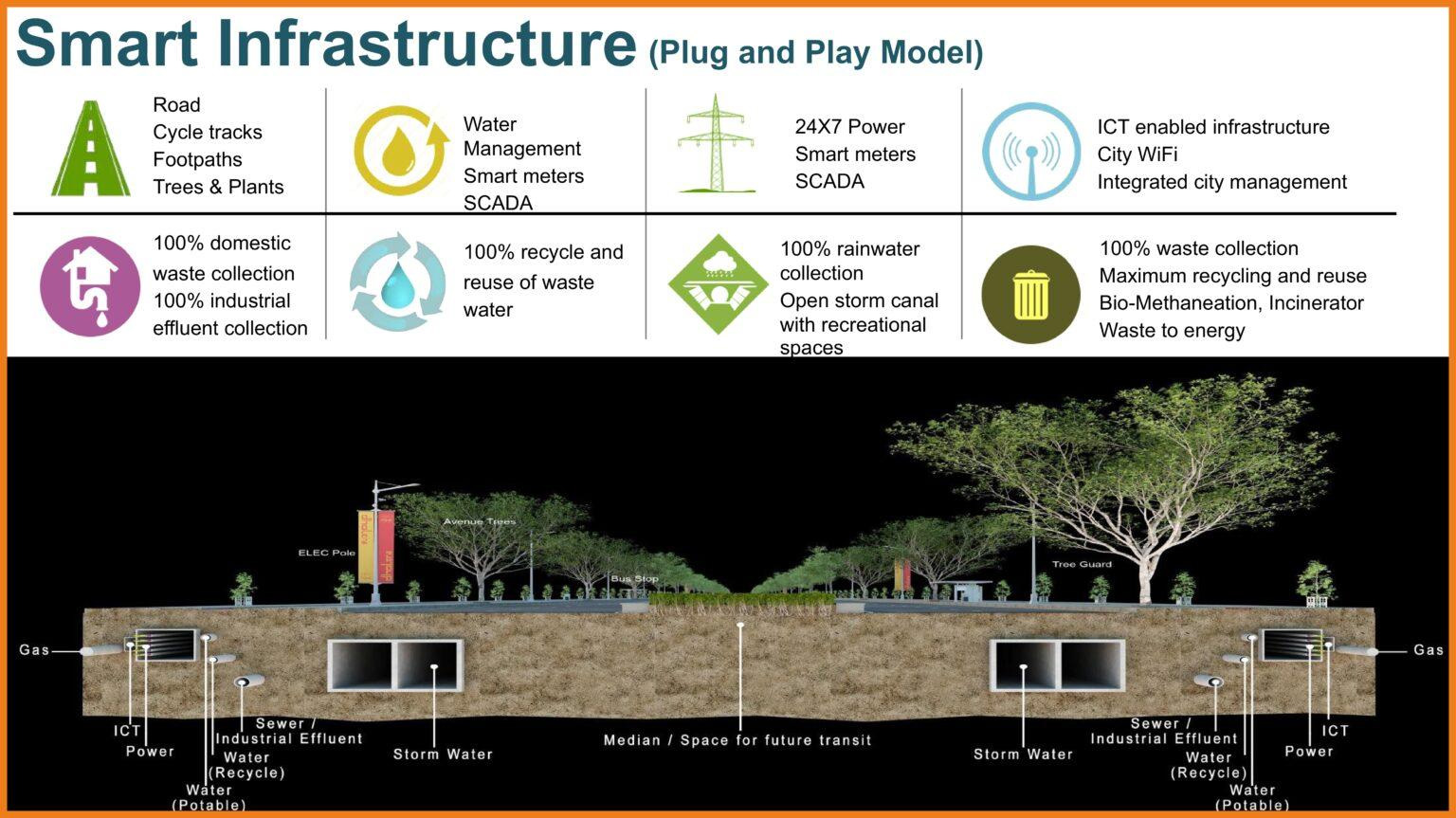 The Draft Development Plan aims at the creation of an economically and socially balanced, new age city with world-class infrastructure and a high quality of life. Adoption of a sustainable approach across key components such as transportation, waste recycling, overall urban form and resource efficiency form the cornerstones of this plan.
